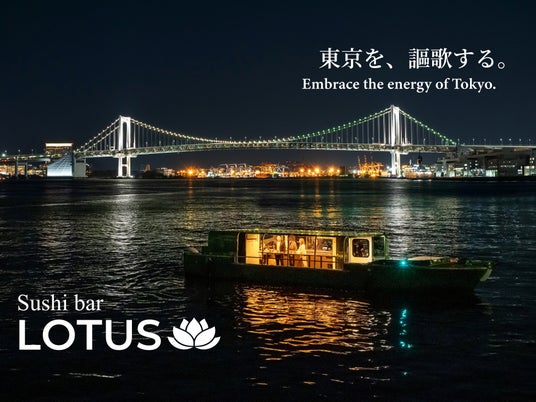 Sushi bar LOTUSは、株式会社東京ウォータウェイズ(本社:東京都墨田区)との共同事業として、同社が保有するWATERWAYSIII(2025年度グッドデザイン・ベスト100)を用い、東京のまばゆい夜景を水上からご鑑賞いただきつつ、ミシュラン獲得店の鮨をバースタイル、すなわちオールスタンディングの乗合形式で提供します。