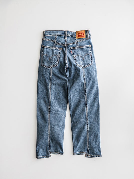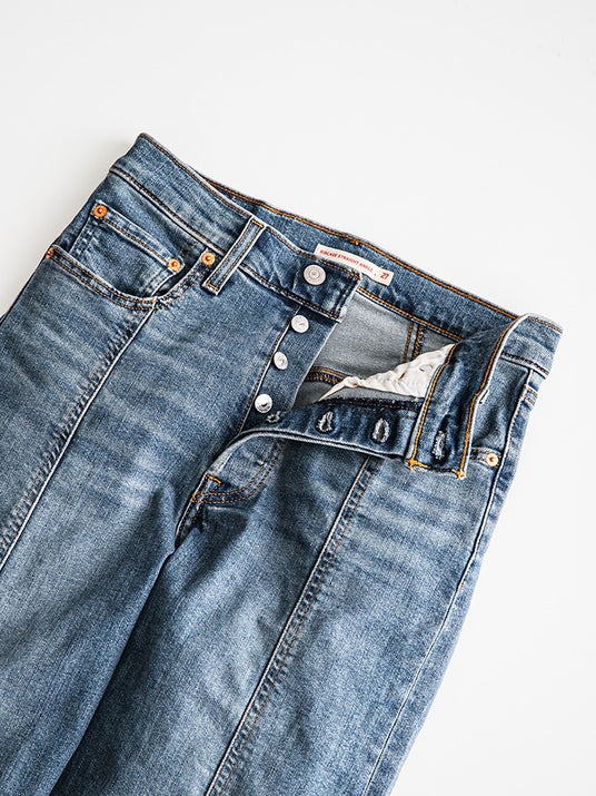 最も特徴的なのはアンクル丈の裾。切り替えデザインを施し、シンプルながらもさりげない存在感をプラス。フロントはLevi’s(R)らしいボタンフライ仕様を採用。ヴィンテージライクな表情を楽しめます。