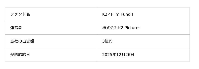 今回、本ファンドを評価いただき、ご参画が叶ったことはこの上ない喜びであり、大きな手応えを感じています。互いの知見を活かし、日本映画の新たな価値創出を目指してまいります。