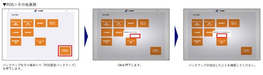 POS情報設定のバックアップが可能になり、故障端末置換時にその設定を適用できるようになりました。ただし、バックアップ時のPOSアプリバージョンと故障端末置換を実行したPOSアプリバージョンが異なる場合、復元に失敗する可能性があります。必ずPOSアプリのバージョンを確認の上、バックアップを実施してください。