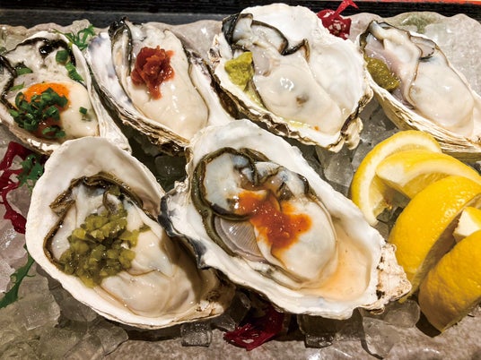プリップリの生牡蠣を、最後まで飽きることなく楽しめる6つのラインナップです。紅葉おろしとレモン:王道のピリ辛。牡蠣の甘みを引き立てる不動の人気