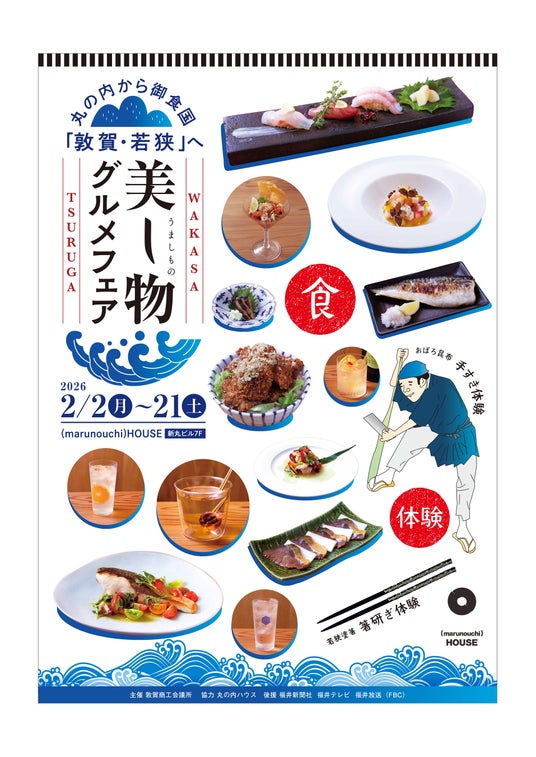 新丸ビル7階「丸の内ハウス」は、福井県の敦賀(つるが)・若狭(わかさ)地域の食材を使ったオリジナルメニューを、フロア内の飲食店全12店舗で提供する『丸の内から御食国「敦賀・若狭」へ 美し物-うましもの-グルメフェア』を2月2日(月)より開催します。