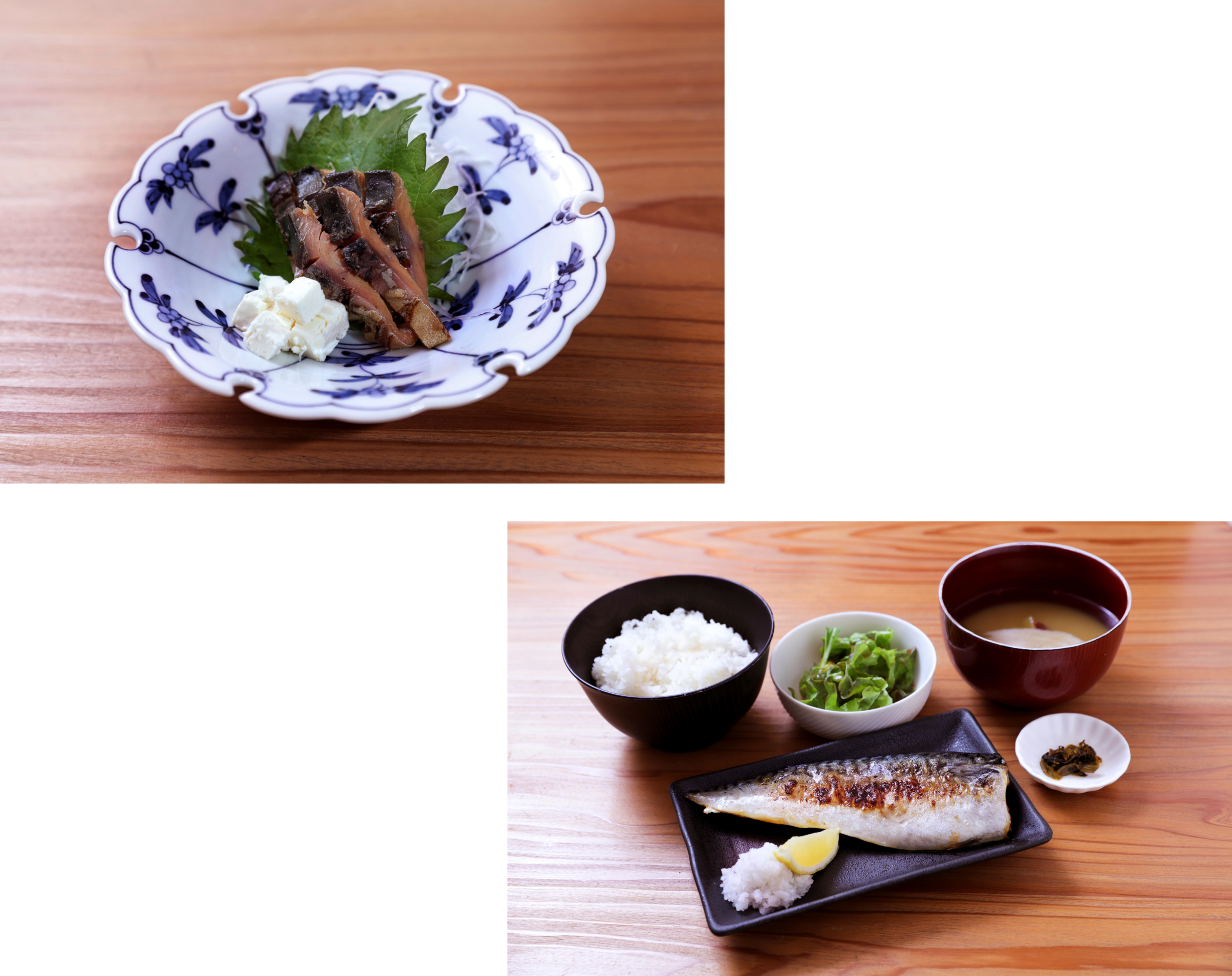 炙りへしこ クリームチーズ添え(1,200円)焼き鯖御膳(1,200円)
