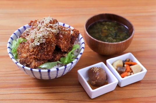 奥井海生堂のふりかけのせソースカツ(1700円)※かどのさん家のへしこ(1,100円)も提供