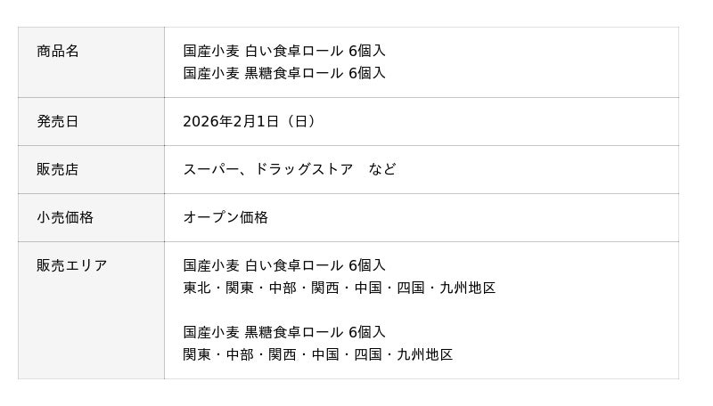 *「国産小麦 白い食卓ロール 6個入」のみ販売