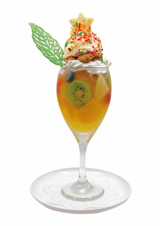 カラフルなフルーツがごろごろと入った、白ワインベースのゼリーパフェ。