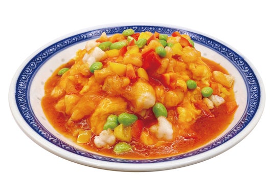 海鮮をふわふわ玉子の上に散りばめ、チリソースをかけた彩り豊かな天津飯。 【別館2階 中華飯店 吉祥楼で販売】
