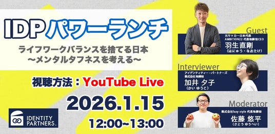 アイデンティティー・パートナーズ株式会社(本社:東京都渋谷区、代表取締役:中野広介)は、2026年1月15日(木)、IDPパワーランチ(オンライン勉強会)第1回「ライフワークバランスを捨てる日本 ~メンタルタフネスを考える~」を開催しました。