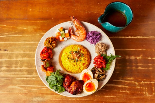 魚介類を中心に素材の旨味をスパイスで存分に引き出した色とりどりのおばんざいを楽しんでいただける美味しさも見た目も贅沢な1皿です。