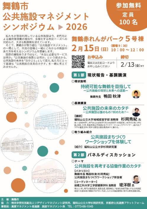 舞鶴市は、公共施設の老朽化や市民ニーズの変化への対応を目的として、令和8年2月15日(日)に「舞鶴市公共施設マネジメントシンポジウム2026」を赤れんが5号棟で開催します。