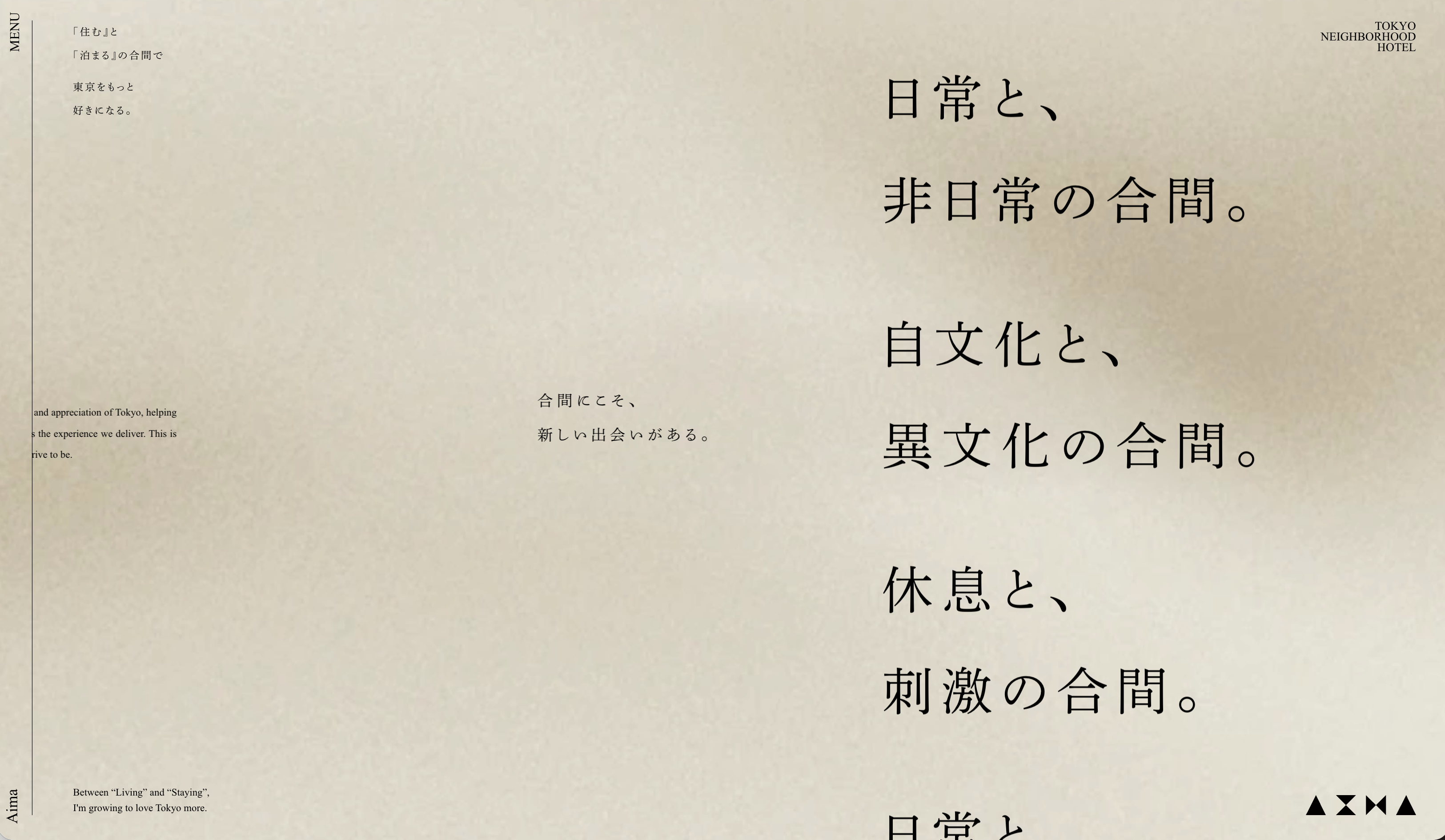 新サイトでは、AIMAが提供したい東京の近所(Neighborhood)に滞在する体験を、より直感的に理解できる情報設計へ刷新しました。今後、各エリアのディープな魅力を紹介するコンテンツや、ホテルの詳細について順次公開していく予定です。