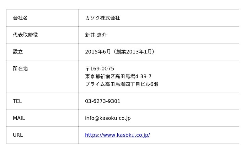 カソク株式会社は、創業2013年(設立2015年)の東京都新宿区に本社を置くホテルの開発・運営コンサルティング会社です。企画・設計から開発、販売、運営までを一気通貫で支援し、アパートメントホテル、ビジネスホテル、戸建てホテルなど、東京・大阪を中心に全国で50棟超の宿泊施設を展開しています。