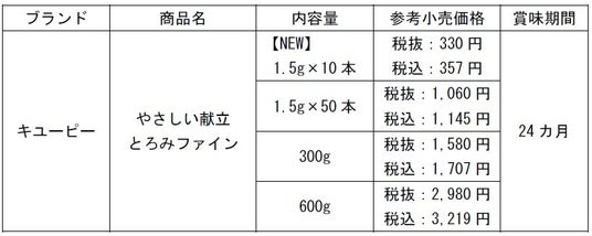 キユーピー株式会社(本社:東京都渋谷区、代表取締役 社長執行役員:高宮 満、以下キユーピー)は、「やさしい献立」シリーズの「とろみファイン」から、初めての方でも手に取りやすい10本入りを2026年3月5日(木)から新発売します。また、既存の3品についてもパッケージデザインをリニューアルします。