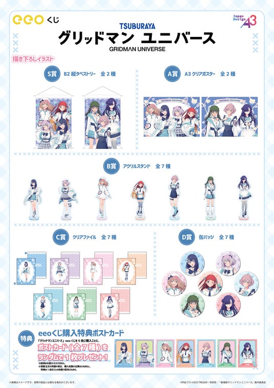 今回発売した『グリッドマンユニバース』の「eeoくじ」を1会計で5枚お買い上げごとに、ポストカード(全7種)をランダムで1枚プレゼントします。