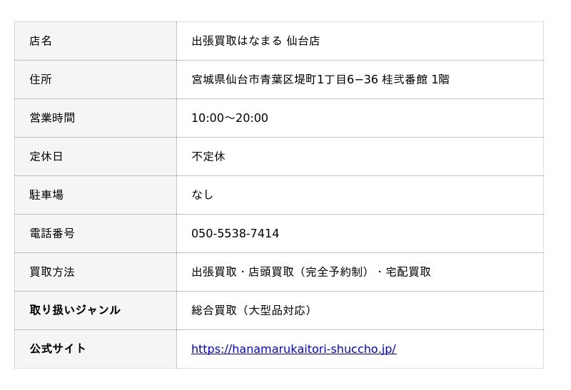 出張買取はなまる仙台店の店舗情報