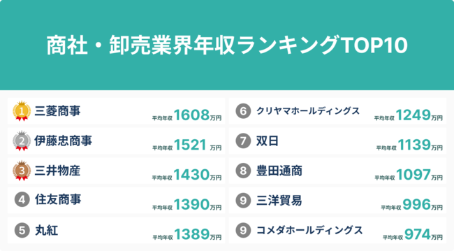 商社・卸売業界における年収ランキングTOP10について
