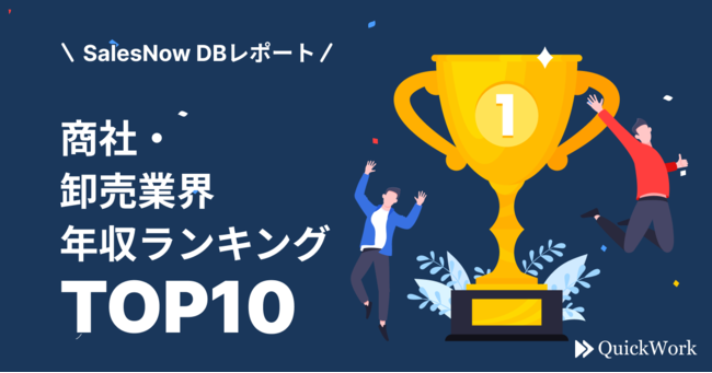 「データとテクノロジーで、働き方を変革する。」をミッションに掲げ、日本全国500万社以上の企業データを基盤に営業の効率化を支援する「SalesNow」を展開してきた株式会社QuickWork(本社:東京都渋谷区、代表取締役:村岡功規、以下「QuickWork」)は、日本全国500万社以上の企業情報を網羅した日本最大級のデータベースを誇る「SalesNow DB」において、商社・卸売業界における年収ランキングTOP10を抽出したのでお知らせします。