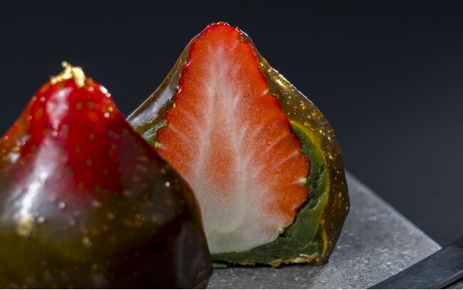 いちご大福とはまた違う、ぷるんとしたこれまでにない食感をぜひお楽しみください。素材それぞれの一番美味しい"瞬間"を切り取った、まさに"旬"を味わう和菓子です。