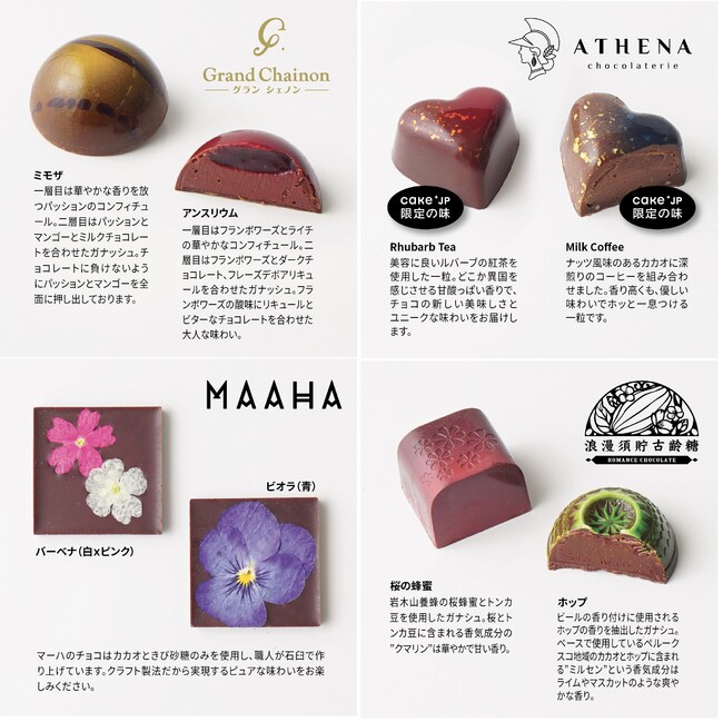 この特集では、国内外の有名チョコレートショップはもちろんのこと、話題のパティシエや知る人ぞ知る名店とコラボレーションしたスイーツなど、Cake.jpでしか買えない限定商品をご紹介しています。