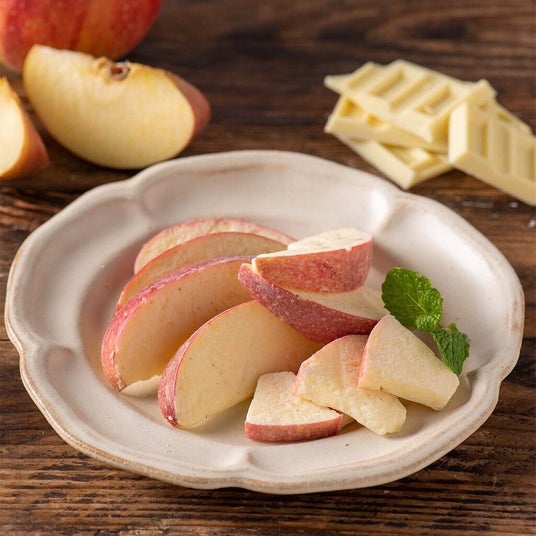 みかんショコラ染めのシリーズ商品で毎年冬の人気商品「りんごショコラ染め」。青森県産ジョナゴールド(サンジョナ)をフリーズドライにし、特別な製法でホワイトチョコを芯まで染み込ませました。シャクッと軽い食感に濃厚なコクが広がります。