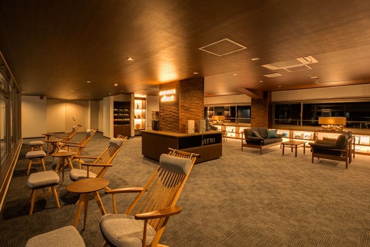 暖炉を囲んでゆったりと過ごせるラウンジ。夜のひとときを静かに楽しめる空間です。