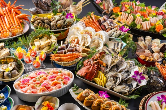 三陸産牡蠣などの魚介を取りそろえた夕食ビュッフェ(イメージ)