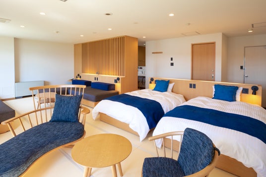 2019年に気仙沼大島大橋が、2021年には気仙沼湾横断橋が開通し、よりアクセスが便利になった東北最大の有人島、気仙沼大島に立つリゾートホテルです。無煙ロースター付のテーブルで「浜焼き」が食べられるレストランや、暖炉を囲む中庭、のんびりお茶を飲みながら過ごすブックラウンジ、プレミアム和洋室にバルコニー付和洋室も誕生しました。サイクリングやマリンスポーツなどアクティビティも充実しています。