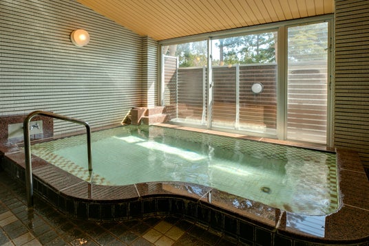 大きな窓から光が差し込む大浴場。ゆったりと湯に浸かり、旅の疲れを癒します。