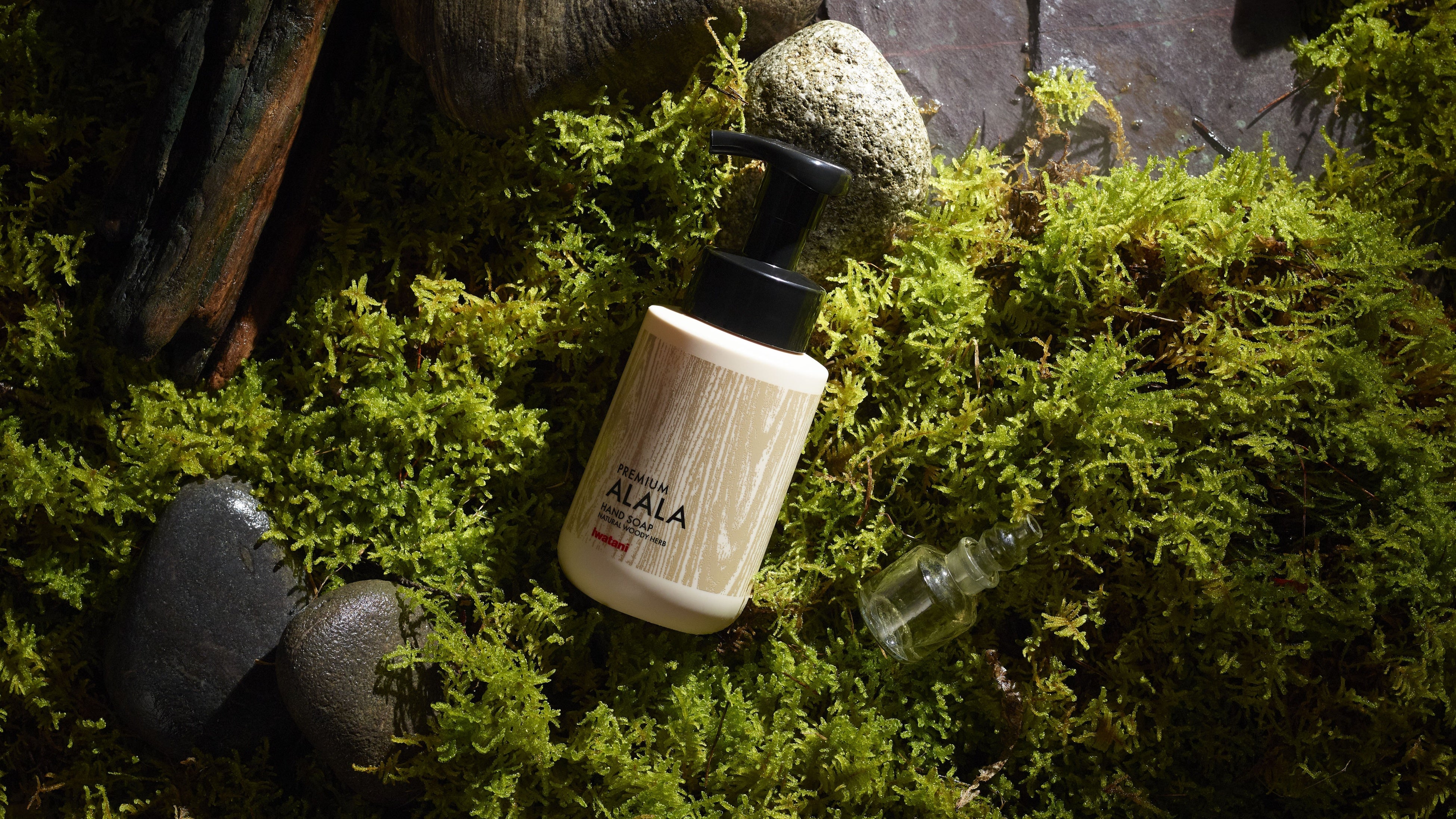 従来の「ALALA」シリーズ同様、洗浄成分は天然パームヤシ油由来100%で、殺菌成分(※)配合により清潔を保ちながらも、手肌への負担を抑えたやさしい洗い心地です。本商品では、そこへ新たに保湿成分をプラス。シアバター(シア脂)と、オーガニック認証を受けたローズマリーエキスを含む10種類のハーブエキスにより、手肌のうるおいをさらに追求した処方へと進化しました。