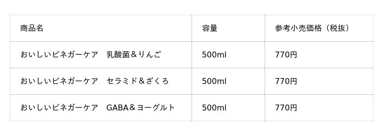 株式会社Mizkan(本社:愛知県半田市、代表取締役社長兼 CEO:吉永 智征、以下ミツカン)は、2026年3月5日(木)より「おいしいビネガーケア(TM) 乳酸菌&りんご・セラミド&ざくろ・GABA&ヨーグルト」を発売いたします。健康・美容ケア成分を配合した、りんご酢ベースのビネガードリンクです。