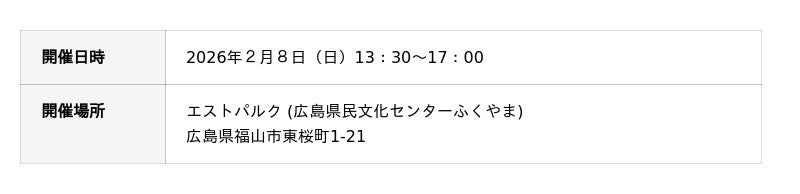 会場:エストパルク(広島県民文化センターふくやま)広島県福山市東桜町1-21