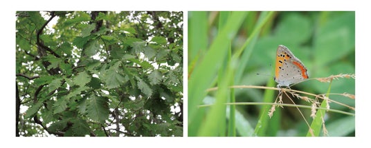 自生するフモトミズナラ、調査時に発見されたベニシジミ
