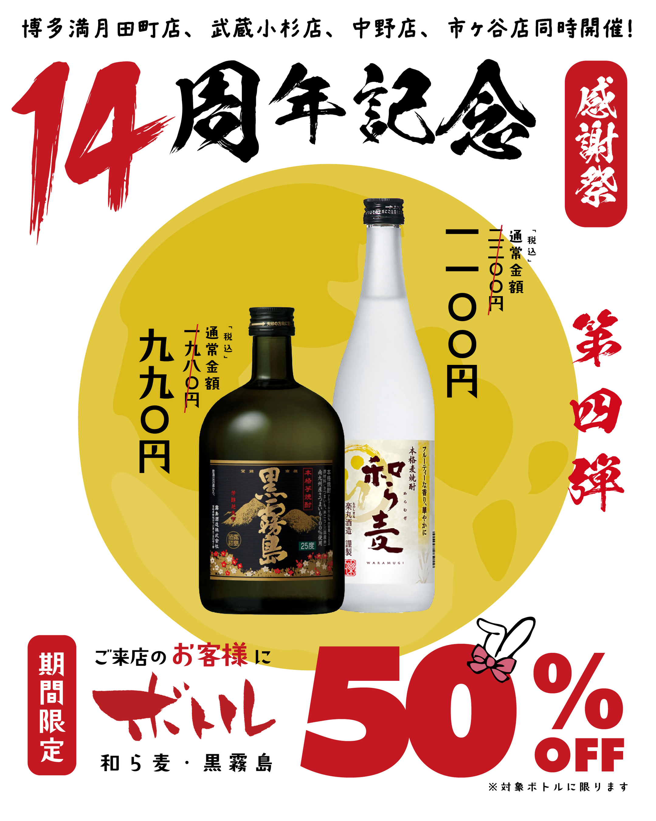 第4弾:2/21(土)~2/26(木)黒霧島・和ら麦 九州の焼酎ボトル半額!