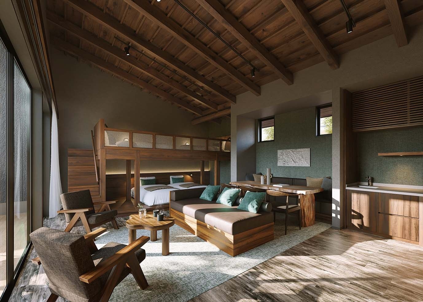全29棟には天然温泉とテラスをしつらえ、大自然に囲まれたプライベート空間で、高原の風を感じながらディナーを食べたり、自然を眺めながら温泉に浸かったり、ゆったりとお寛ぎいただくことができます。高天井で広々としたお部屋は、シーンに合わせてお選びいただける4つのタイプがあり、バレルサウナ付きのVILLAや、るり渓で初の愛犬と一緒に過ごせるVILLAなど、様々な過ごし方をお楽しみいただけます。また、エリア内にはドッグランも併設しております。