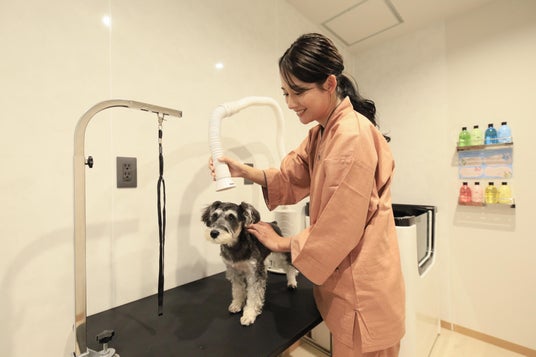 4種類のシャンプー&リンスや復元ドライヤーを完備の<トリミング&ドライルーム>