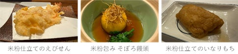 赤坂とだでは、ineRobo社の雷粉を用いた品々を試作いたしました。米粉ならではの軽やかな食感と上品な旨味を生かし、伝統の技と調和した新しい味わいをご提案いたします。