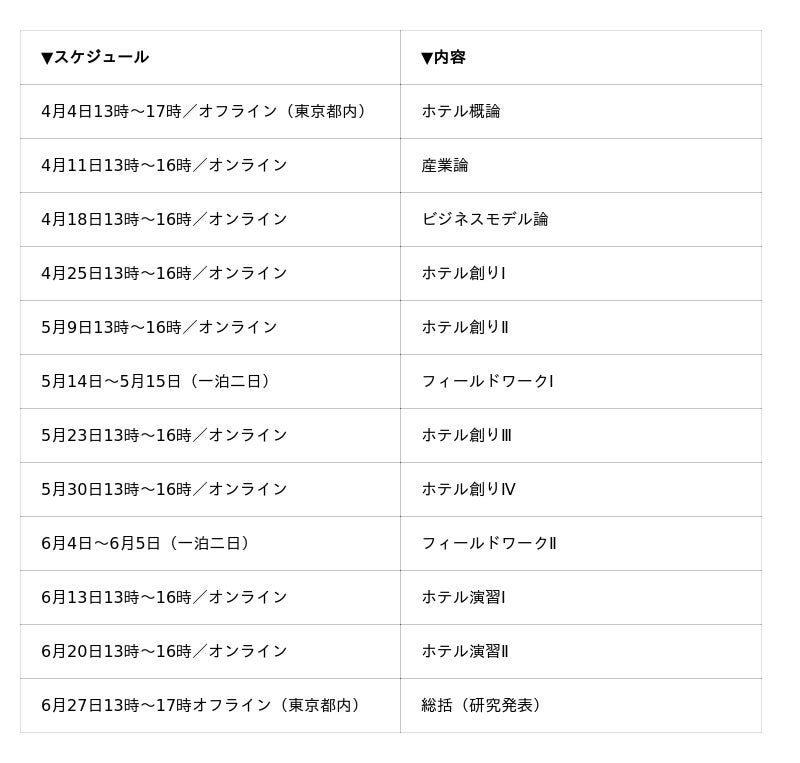 本ゼミでは、ホテルづくりを取り巻く「不動産(ハード)」と「ホスピタリティ(ソフト)」の知見を、マクロ・ミクロの両視点から学習します。さらに、宿経営者としてのマインドセット(在り方や価値観)を整えることで、「コンセプトが見えないホテル」ではなく、市場から長く愛され続けるホテルを創出できるプロデューサーの育成を目指します。