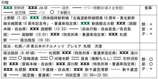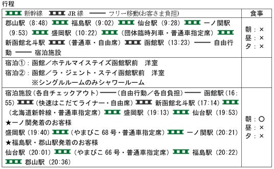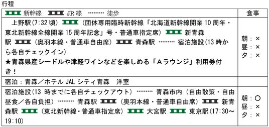 - 本商品では、首都圏および東北各地から出発し、青森・北海道方面へ向かう特別な新幹線にご乗車いただきます。現地では、各地のホテルでの宿泊がセットとなっており、記念イヤーにふさわしい特別な旅をお楽しみいただけます。