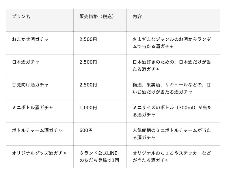 「酒ガチャ」とは、「なにが当たるかわからない。だからこそ楽しめる、新たなお酒との出会い。」をコンセプトに、日本酒・梅酒・果実酒・リキュール・焼酎・ワイン・プレミアムサワーベースなど、500種類を超えるお酒の中から、ランダムにお酒をお届けするクランドの人気サービスです。2019年に誕生し、コロナ禍の家飲み需要をきっかけにSNSを中心に話題となりました。