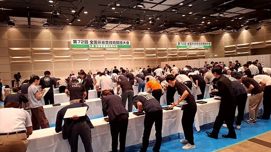 同大会は1956年に始まった歴史のある大会で、日本茶業界で最も権威のある競技会の一つとして位置づけられ、全国の茶師の鑑定力を競う場となっています。