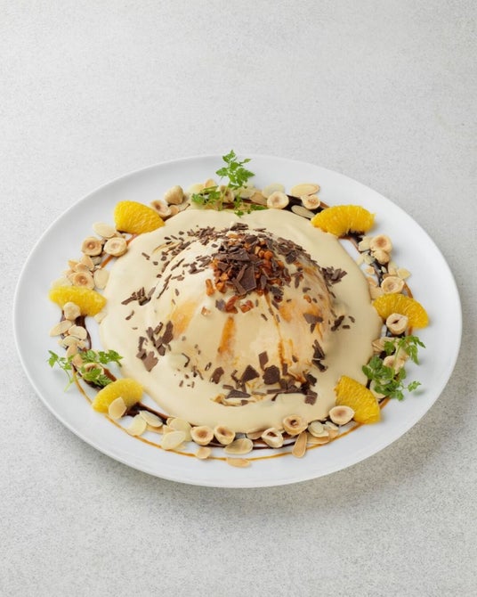ふわふわで口どけの良いフロマージュスフレに、特製キャラメルシャンティを重ね、ほろ苦いカラメルソース、チョコレート、キャンディングアーモンドをトッピングすることで、香ばしい風味と奥深い味わいを演出。さっぱりとしたオレンジと一緒に召し上がることでキャラメル、ナッツ、チョコの味わいをより一層お楽しみいただけます。