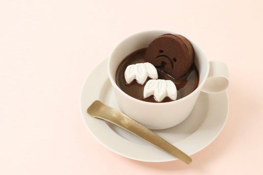 犬の顔はココア、白い竹はスキムミルクのお干菓子となっており、カップに入れてお湯を注ぐと濃厚なホットココアをお楽しみいただけます。ココアの干菓子は、なんと100年以上前に作られた“犬型”が原型となっており、とても愛らしいフォルムです。白い“竹”の干菓子は、スキムミルクで出来ているので、ほんのりミルキーな味わいに。