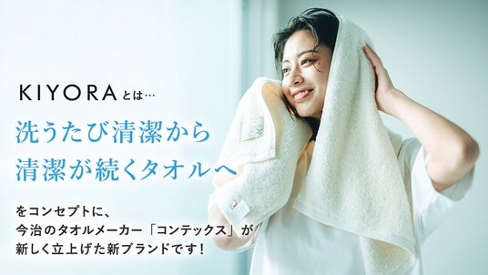 「KIYORA」は、コンテックス(株)の高いタオル製造技術と機能性素材を融合した新感覚のタオル。