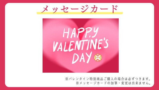 バレンタイン対象商品をご購入の方全員に、直接伝えるには照れくさい感謝の言葉を代弁する、ポップでお洒落な「バレンタイン限定メッセージカード」を無料でお付けします。