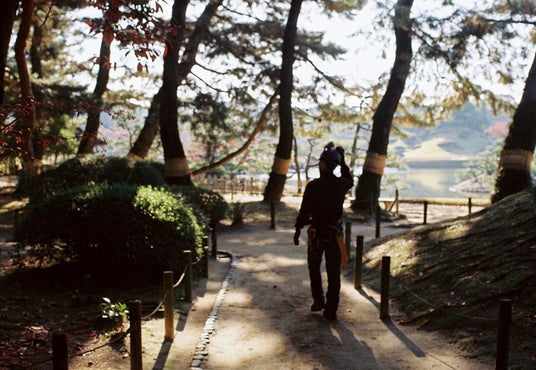 日本庭園において松の巨木を保全する河内氏