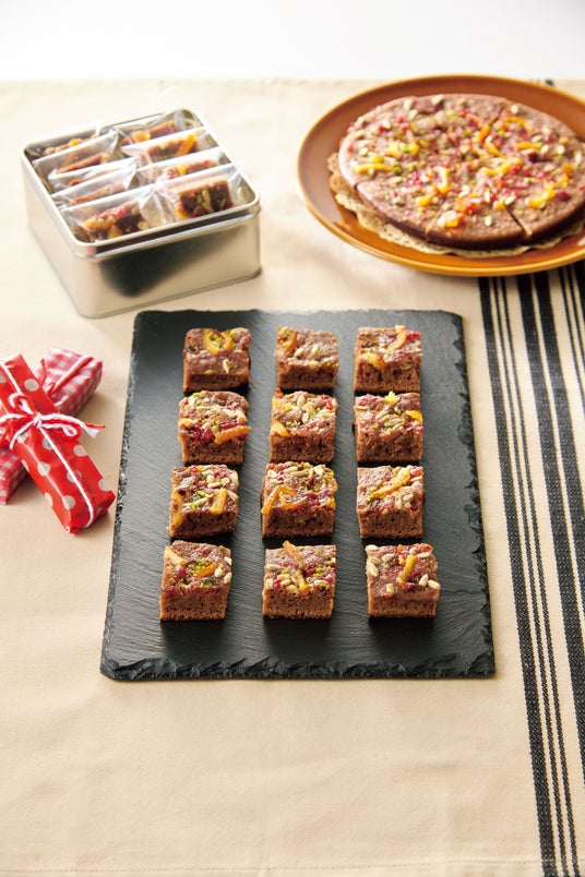 特長:ザクザク食感のヘーゼルナッツを混ぜ込みました。