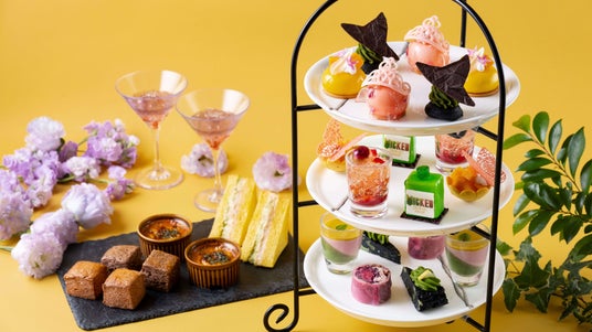 魔法と音楽が紡ぐ友情と絆の物語を、優雅なハイティーで表現しました。色とりどりの料理やドリンクを楽しみながら、新宿の夜景が花々の彩のように煌めく、幻想的で特別なひとときをお過ごしください。