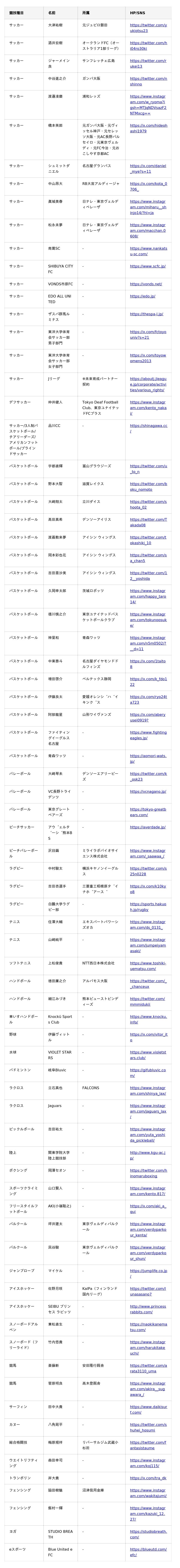 <BASE UP SPORTS サプライヤー契約一覧(現時点)>