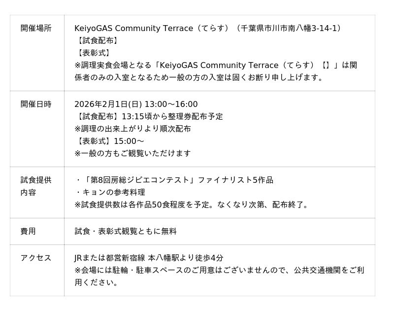 房総ジビエPR業務[主催:千葉県農林水産部農地・農村振興課(千葉県千葉市中央区市場町1-1)/事務局:株式会社オニオン新聞社(本社:千葉県千葉市中央区中央3-3-1 代表取締役 山本 寛)]は、「第8回房総ジビエコンテスト(加工食品)」を2026年2月1日(日)13時~16時に開催いたします。ファイナリスト作品の無料試食配布や、コンテストおよび表彰式の観覧無料、房総ジビエの各種展示やワークショップを開催します。