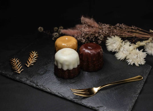 もっちり感を追求した大ぶりのカヌレのトップに、カヌレに合う厳選した3種のフレーバーのチョコレートをコーティング。スイートチョコ、ホワイトチョコ、キャラメルチョコそれぞれのチョコレートとカヌレの絶妙な味のコントラスト、カヌレのもっちり食感をお楽しみいただけます。